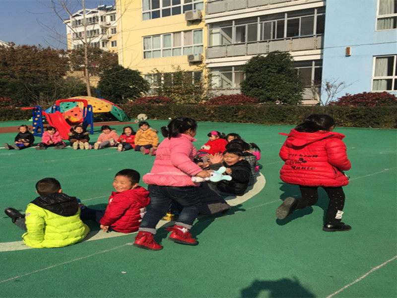 今天我们中三班开展了有趣的户外活动--丢手绢。在操场上小朋友们围坐成圈开展游戏,玩的非常开心。