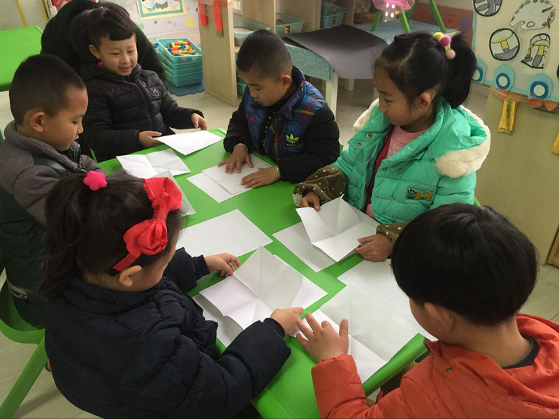 看!我们小朋友自己动手折折,折成四等分,厉害吧!
