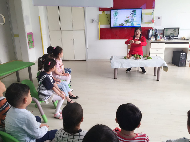 宝贝们聚精会神的听老师讲述粽子来历与特征。
