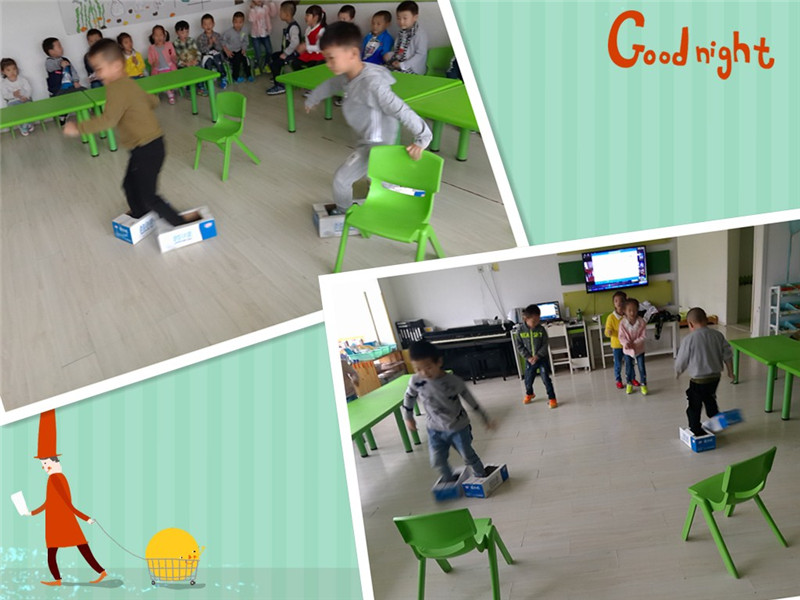 今天我们班开展了室内游戏活动《穿大鞋》,孩子们分成两组,穿着用纸盒做成的大写,进行接力走比赛,先走完的一组获胜,通过活动,孩子们明白了团队合作的重要性。